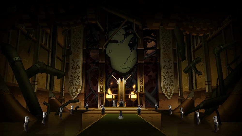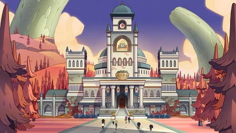 The last important place in the Owl house that is part of the Boiling Isles is the Emperor’s castle which is built around a giant heart. This heart is the Titan’s heart. The Titan was dead and yet his heart was still beating, Emperor Belos built his castle around this heart and has been shown in a couple scenes, the final episode “Watching and Dreaming” confirmed that the heart we had seen previously was the Titan’s. We also get some plot progression with the heart, but that will be part of another post.